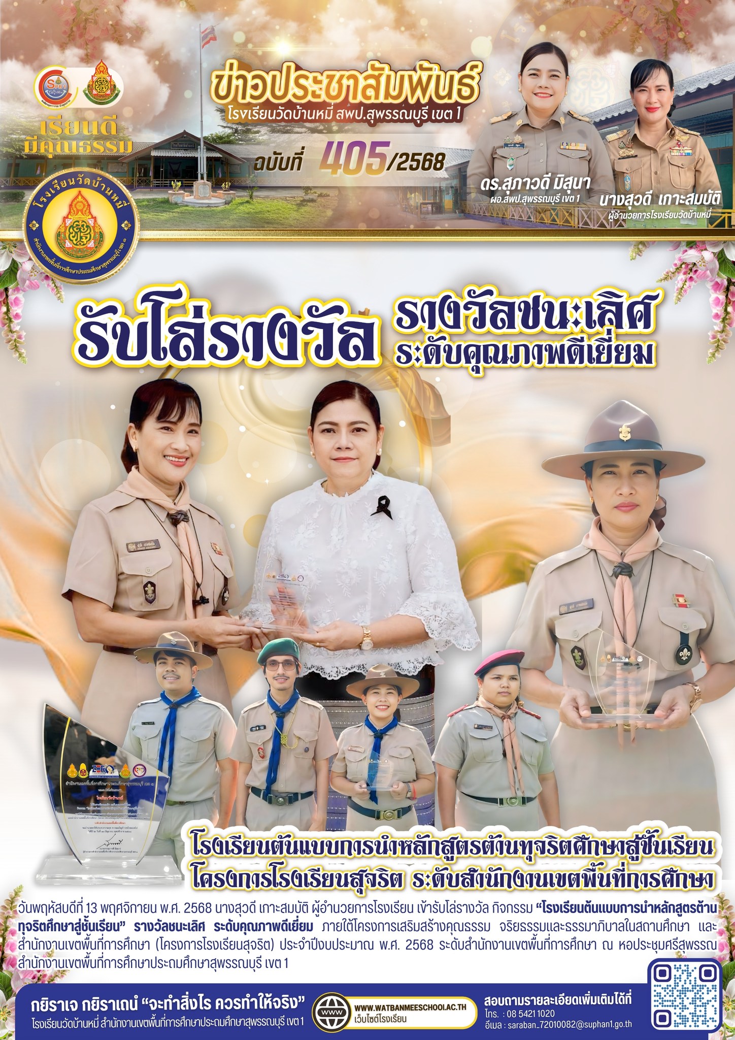 รับโล่รางวัล โรงเรียนต้นแบบการนำหลักสูตรต้านทุจริตศึกษาสู่ชั้นเรียน รางวัลชนะเลิศ ระดับคุณภาพดีเยี่ยม