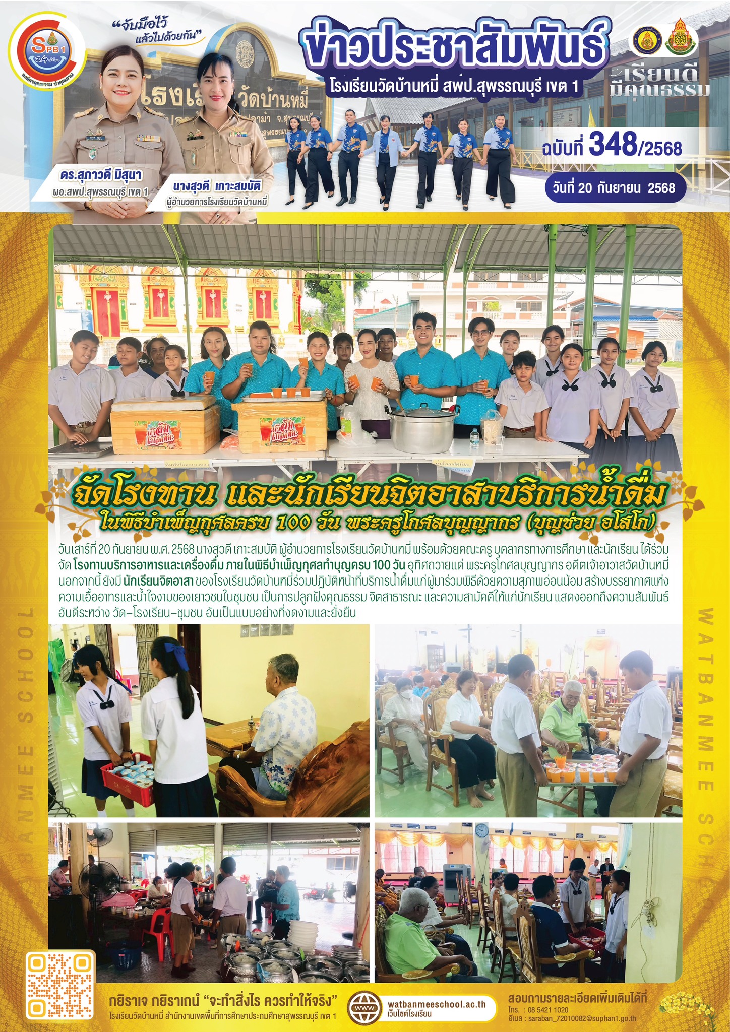 พิธีฌาปนกิจศพคุณแม่ทองคำ ภาษิต และนักเรียนจิตอาสา ร่วมปฏิบัติหน้าที่บริการน้ำดื่ม