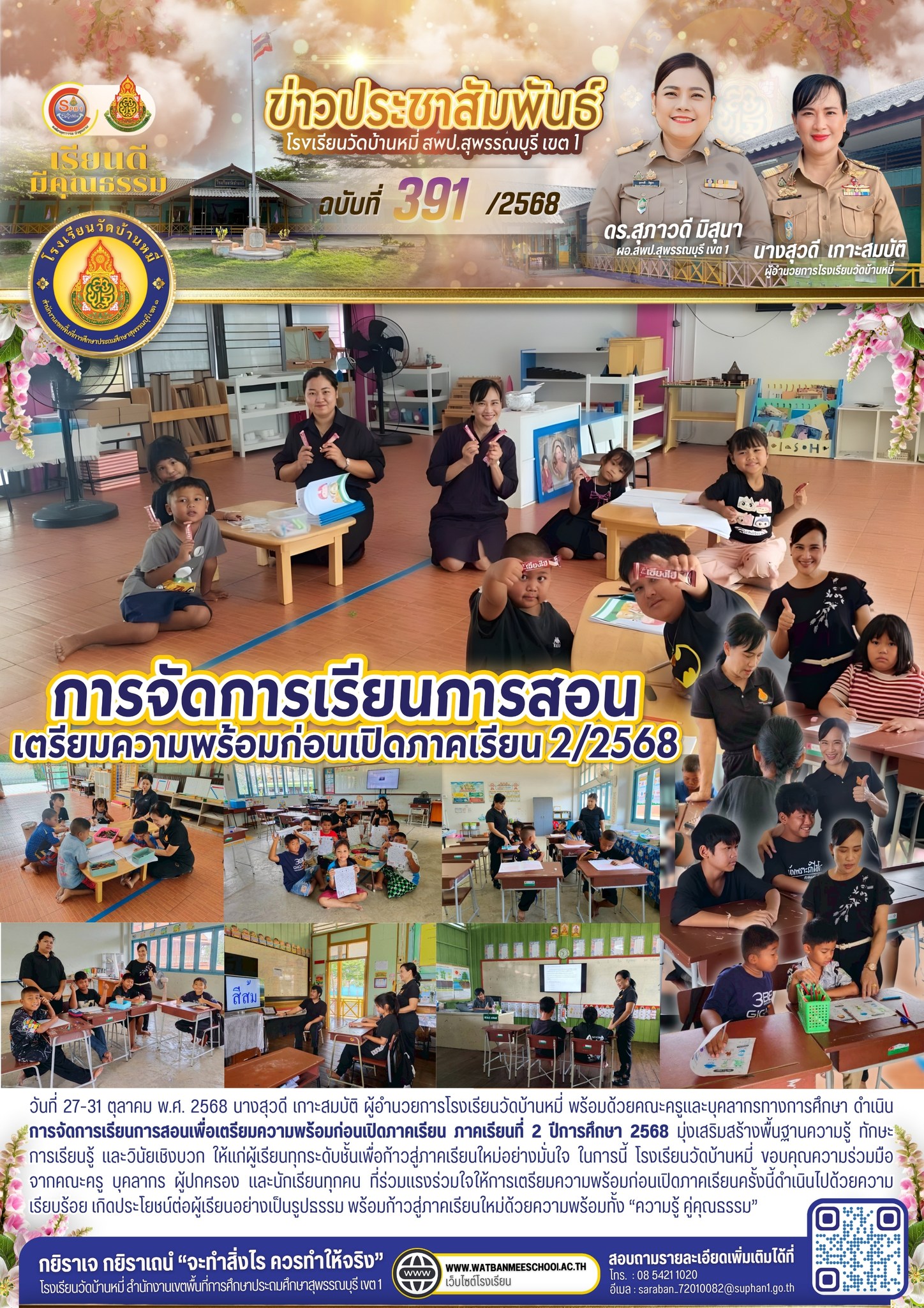 การจัดการเรียนการสอนเพื่อเตรียมความพร้อมก่อนเปิดภาคเรียน ภาคเรียนที่ 2 ปีการศึกษา 2568