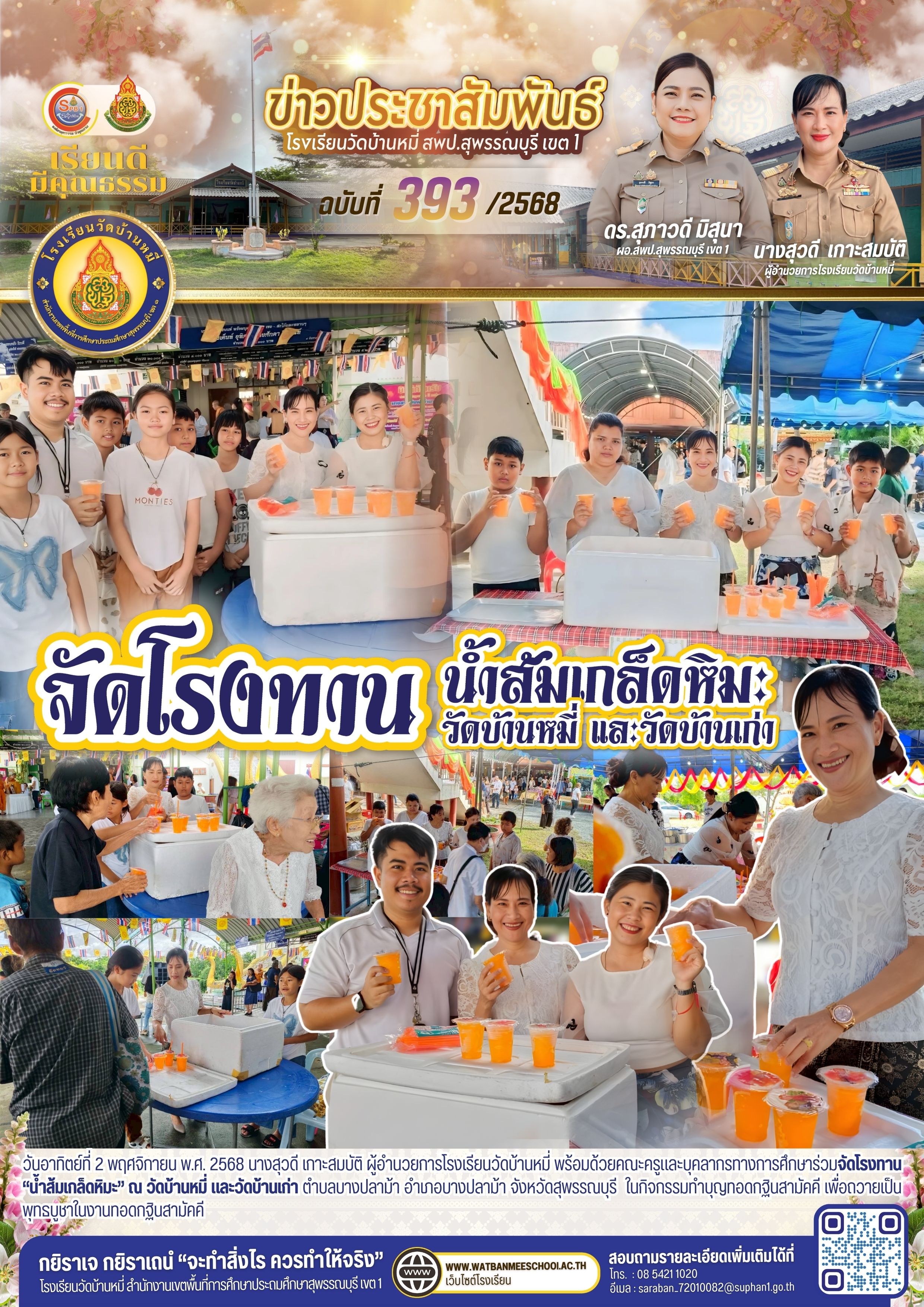 จัดโรงทาน น้ำส้มเกล็ดหิมะ ณ วัดบ้านหมี่ และวัดบ้านเก่า