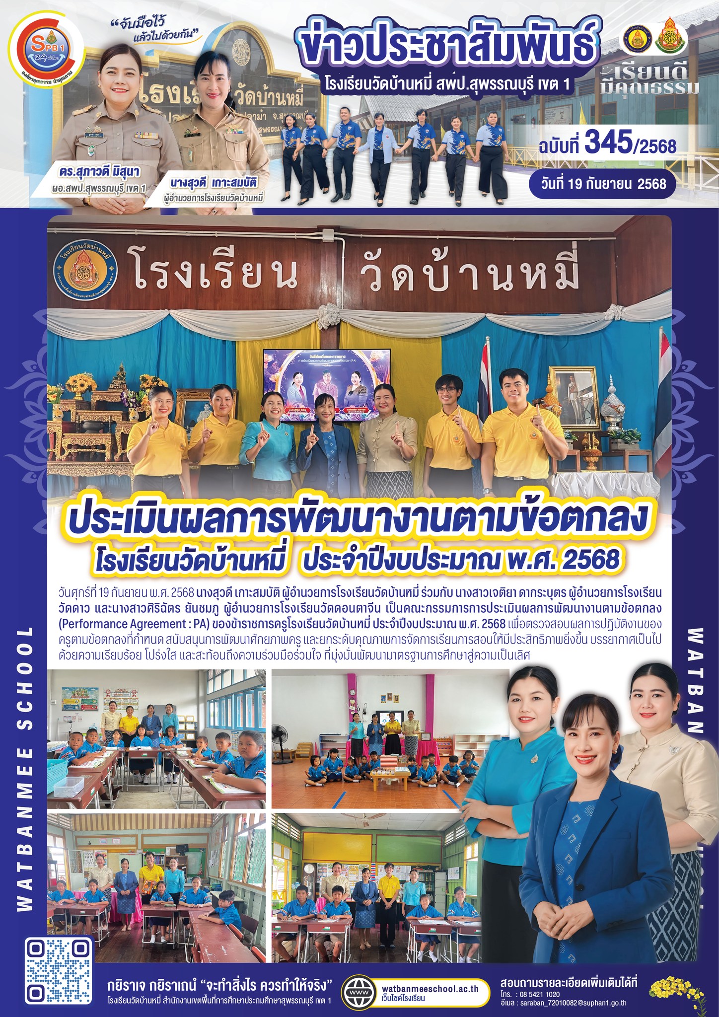 การประเมินผลการพัฒนางานตามข้อตกลง (Performance Agreement : PA) ของข้าราชการครูโรงเรียนวัดบ้านหมี่ ประจำปีงบประมาณ พ.ศ. 2568