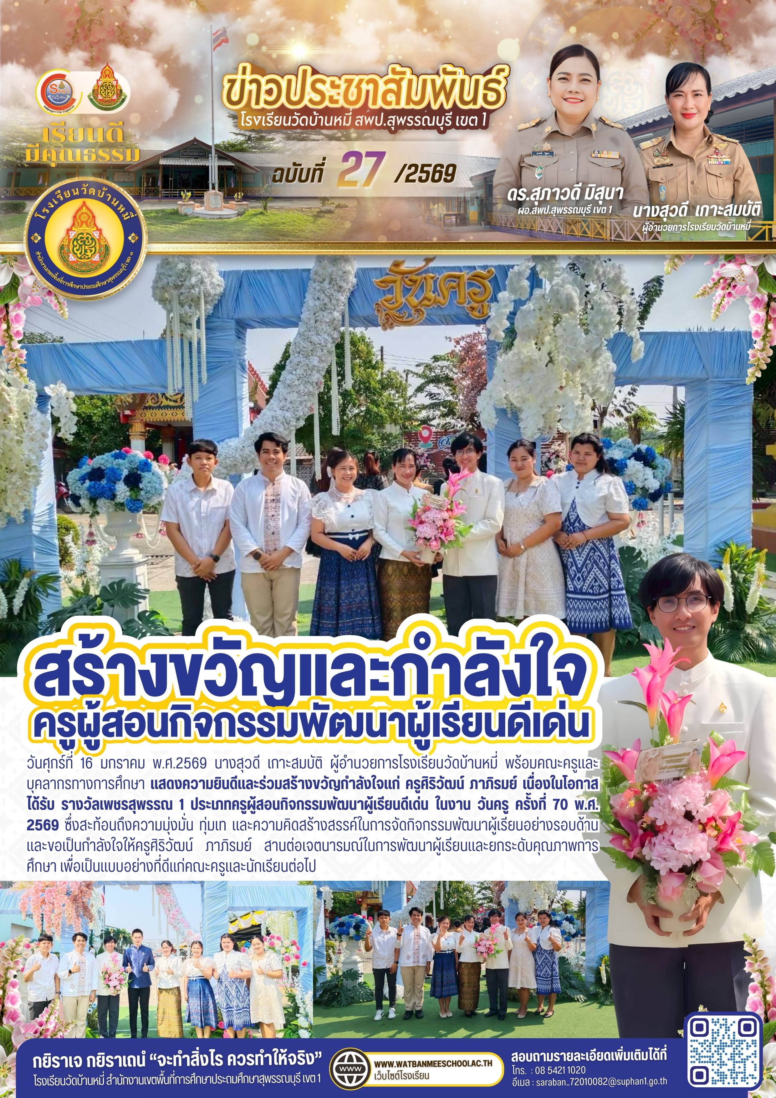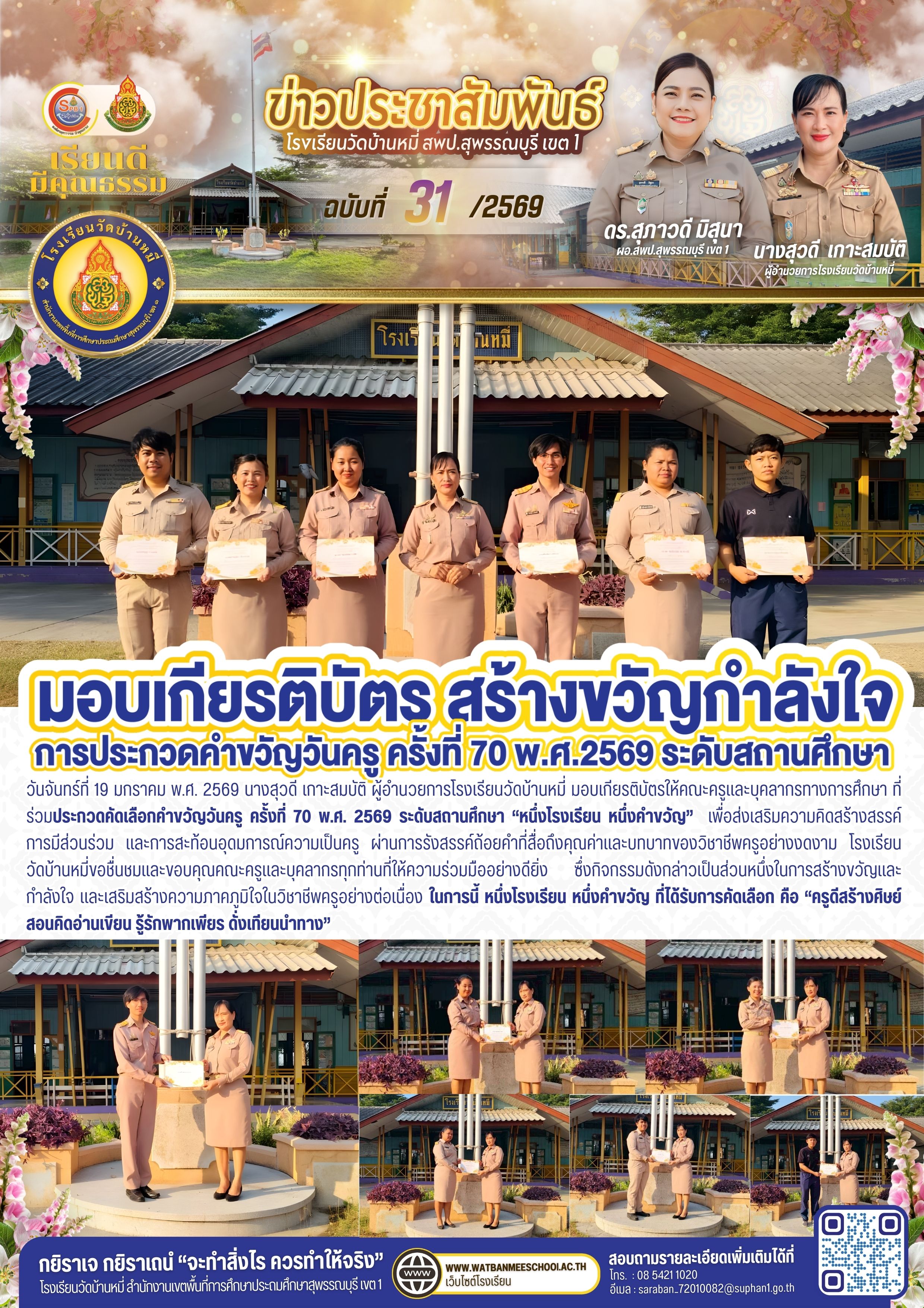 ประกวดคัดเลือกคำขวัญวันครู ครั้งที่ 70 พ.ศ. 2569 ระดับสถานศึกษา หนึ่งโรงเรียน หนึ่งคำขวัญ