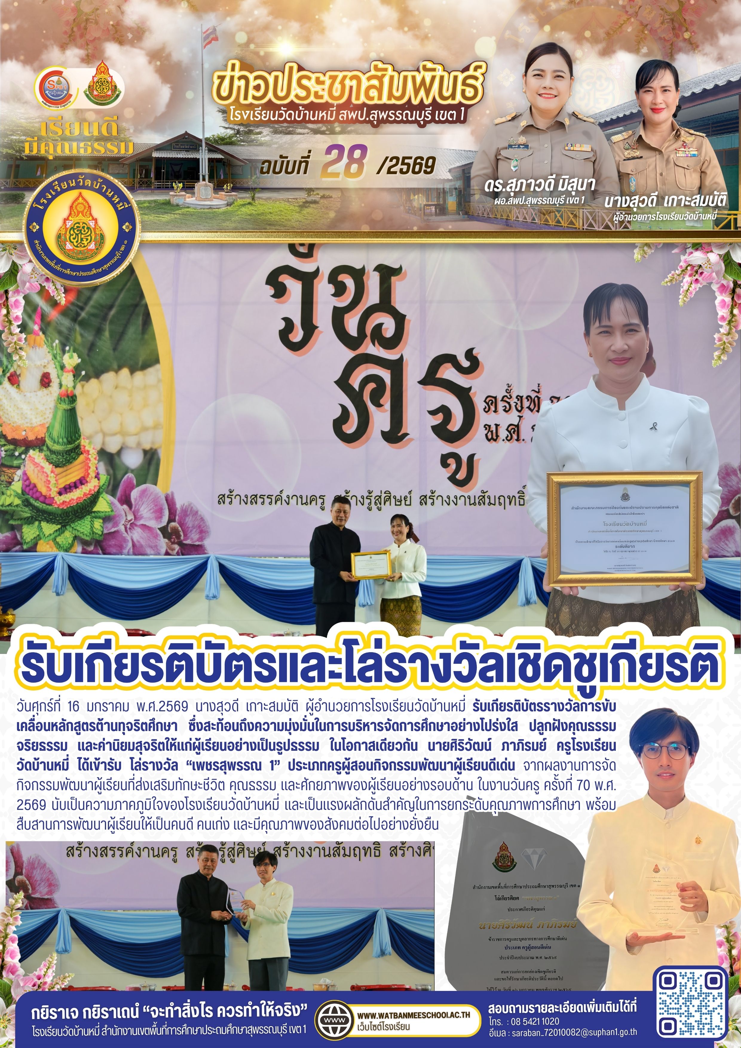 รับเกียรติบัตรรางวัลการขับเคลื่อนหลักสูตรต้านทุจริตศึกษาและโล่รางวัล เพชรสุพรรณ 1