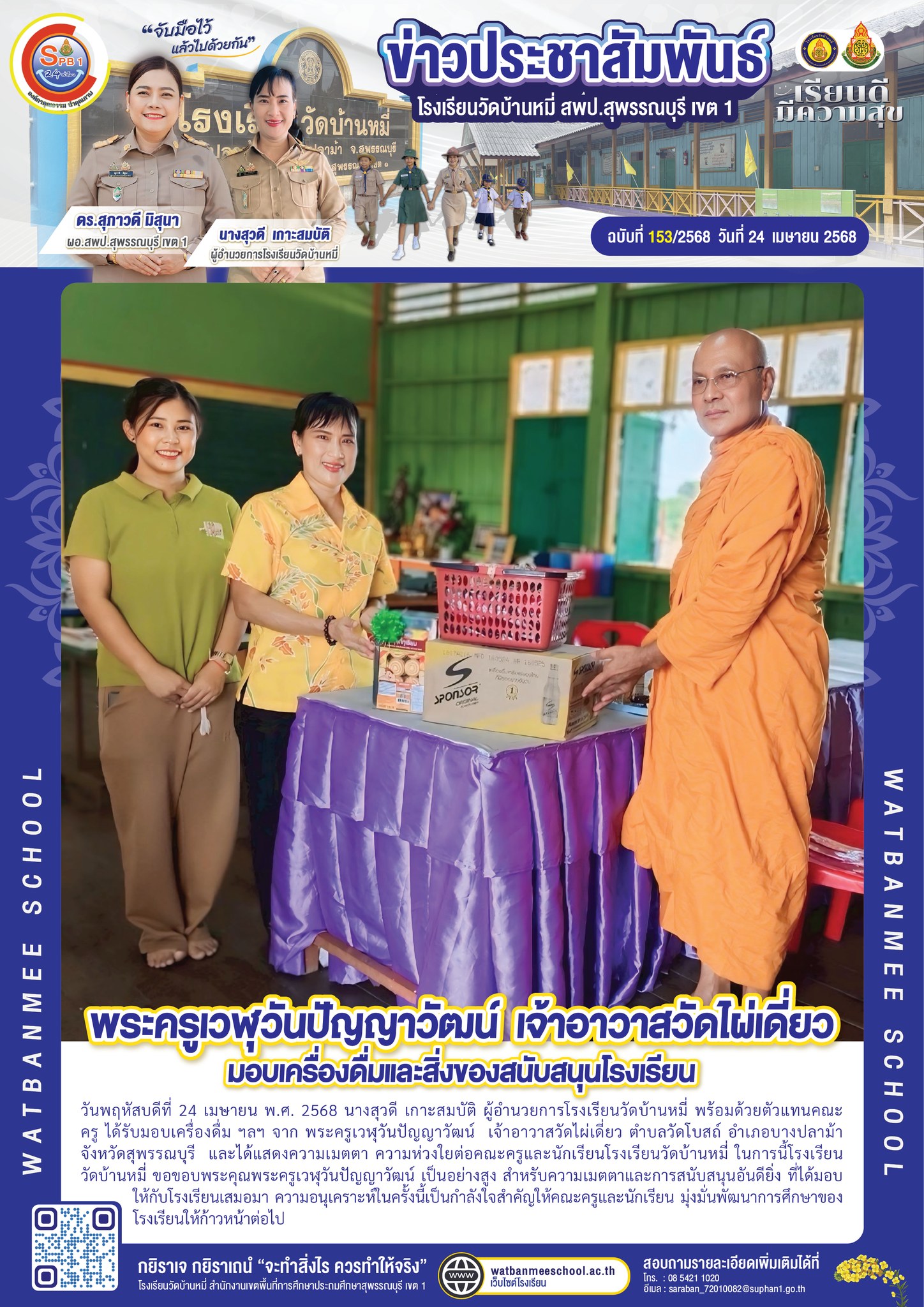 ร่วมแสดงความขอบคุณ นางปรินดา แถลงกิจ ครูโรงเรียนวัดลานคา ที่ได้มอบผลไม้