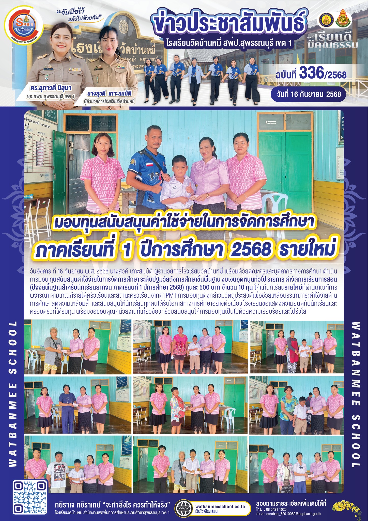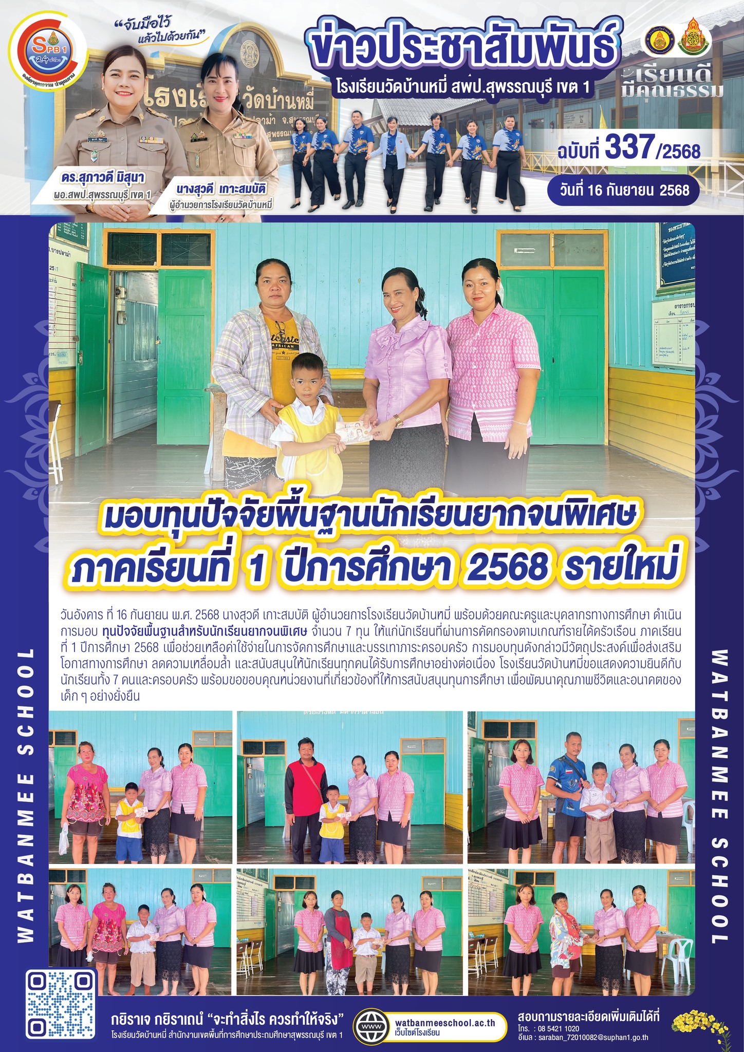 มอบ ทุนสนับสนุนค่าใช้จ่ายในการจัดการศึกษา ระดับปฐมวัยถึงการศึกษาขั้นพื้นฐาน งบเงินอุดหนุนทั่วไป รายการ ค่าจัดการเรียนการสอน (ปัจจัยพื้นฐานสำหรับนักเรียนยากจน ภาคเรียนที่ 1 ปีการศึกษา 2568)