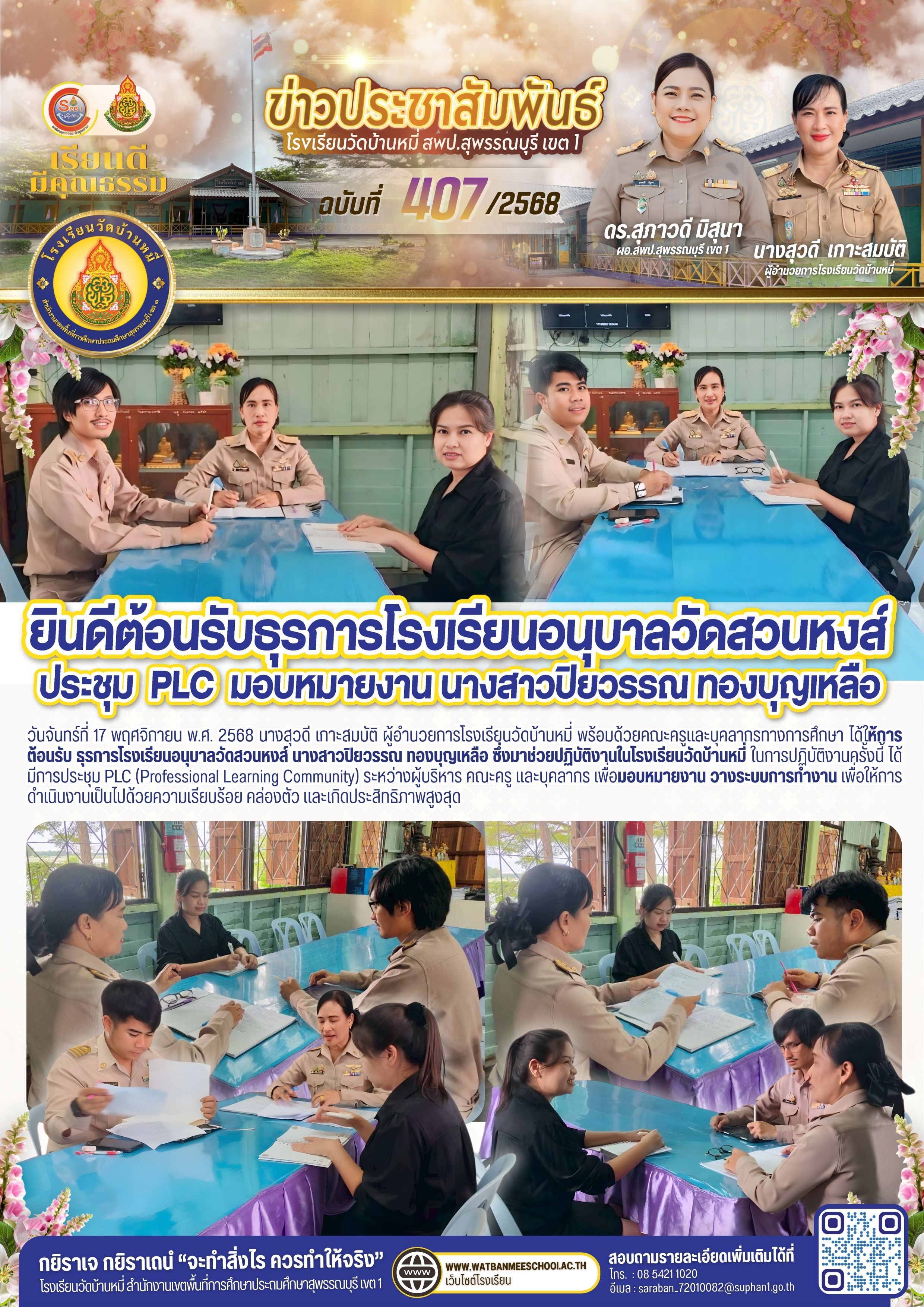 ธุรการโรงเรียนอนุบาลวัดสวนหงส์ ช่วยปฏิบัติงานในโรงเรียนวัดบ้านหมี่