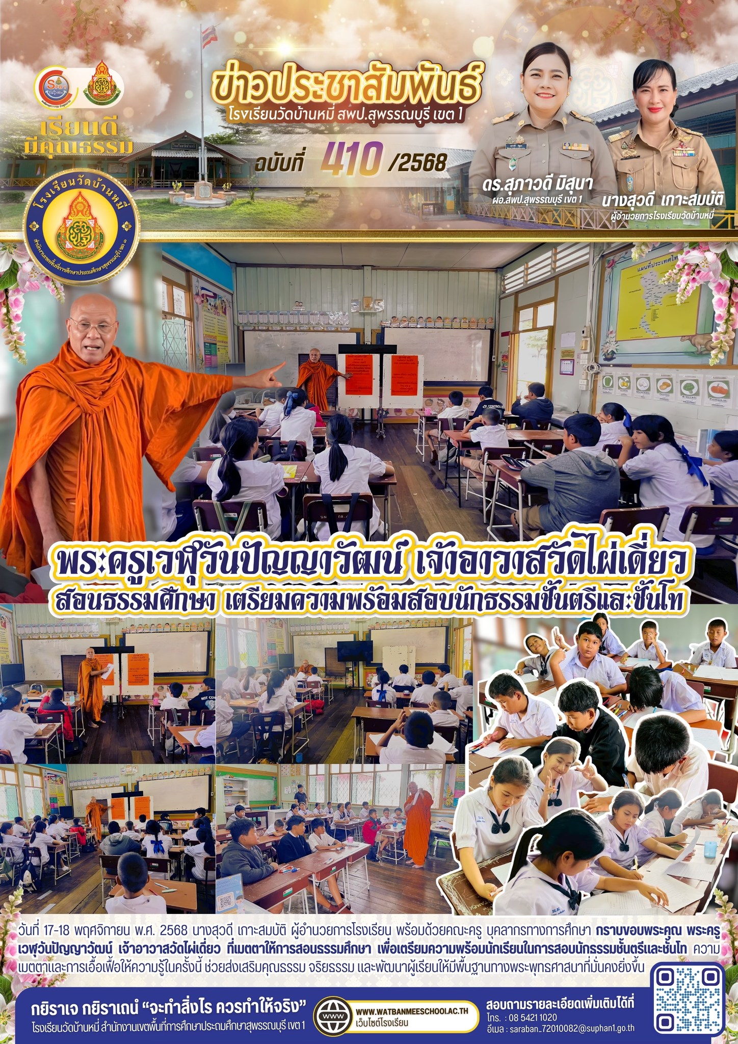 พระครูเวฬุวันปัญญาวัฒน์ เจ้าอาวาสวัดไผ่เดี่ยว สอนธรรมศึกษา